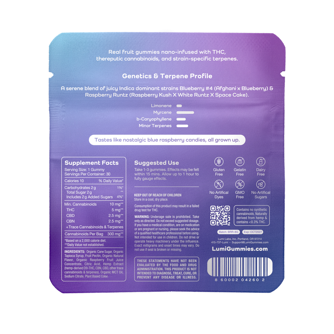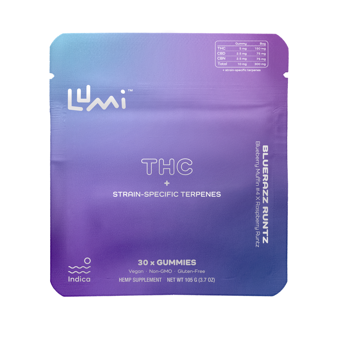 Key Features Bluerazz Runtz Indica Lumi Gummies 300mg
